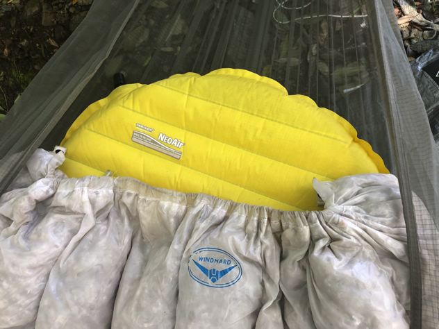 今回の寝具は、下はネオエアーXライト女性用エアマットに、上はウインドハードのスケスケトップキルトのみ。ちょうど良かったです。