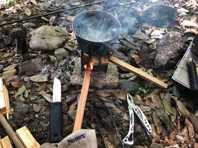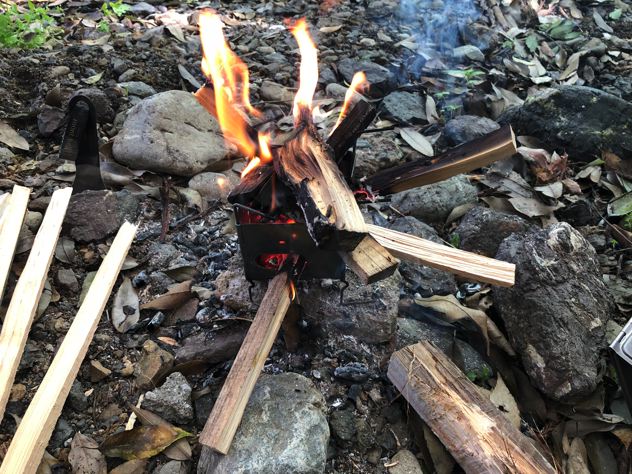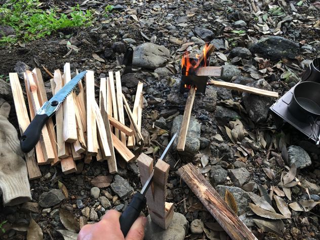 今回は初めてガスなしにしたので朝から焚火で湯沸かし。