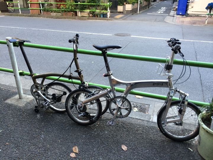 いつもの様に銀座デザインルームに集合して、ミスターはbd-1 Speedハイポリッシュなイチローくん、僕ちゃんはBrompton S2E-Xウルトラライトカスタムなブロくんにて、出発!