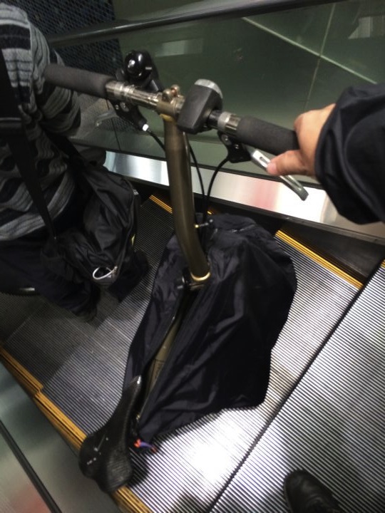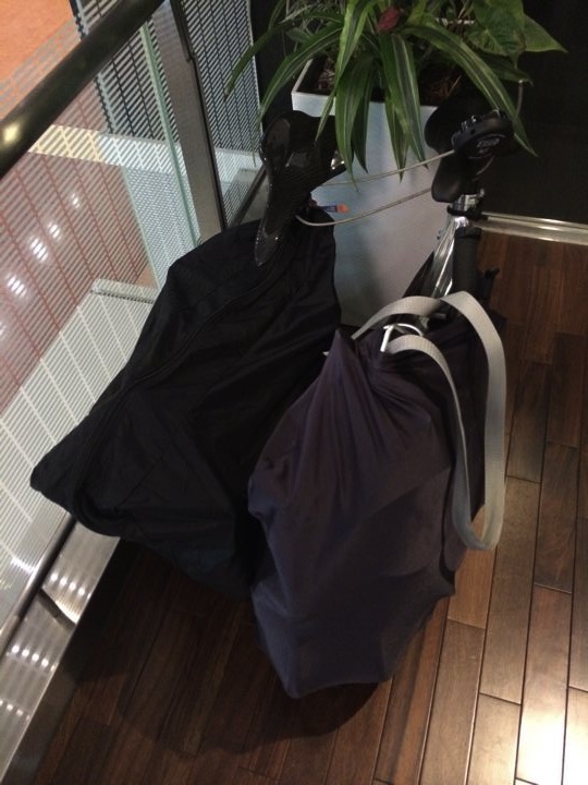 で満腹状態でいきなり輪行!この頃はまだカバーでよかったので軽い!