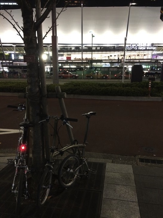 犬の散歩状態で輪行で東京駅へ。