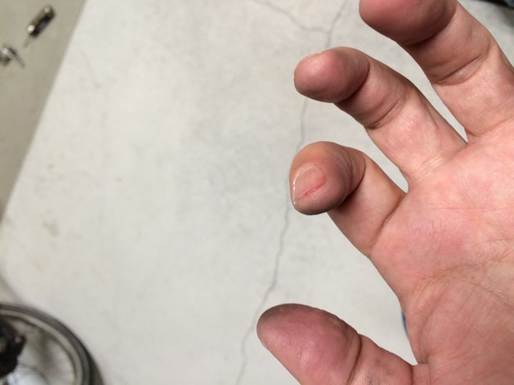 くしゃくしゃワイヤーが爪の間に突き刺さって