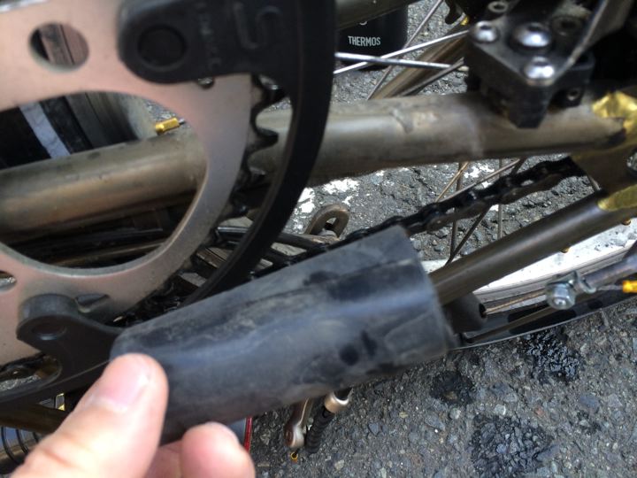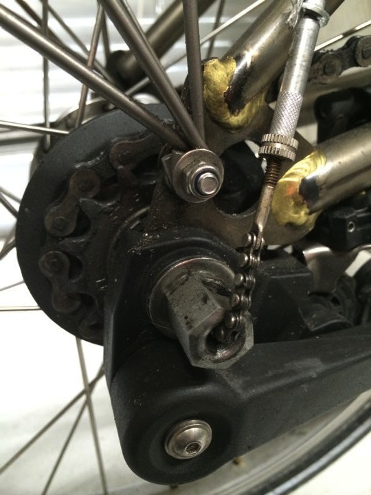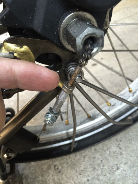 お外でひっくり返して変速調整してみる事に。
