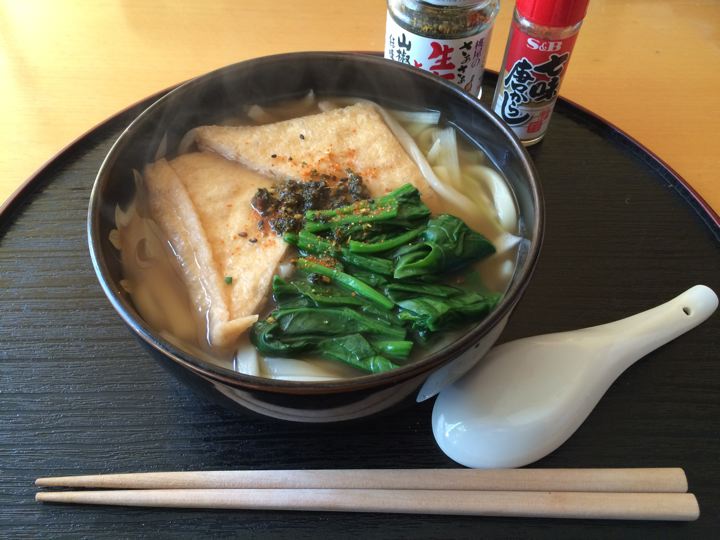 きつねうどんを食べてTwitterの返事を待ちます。