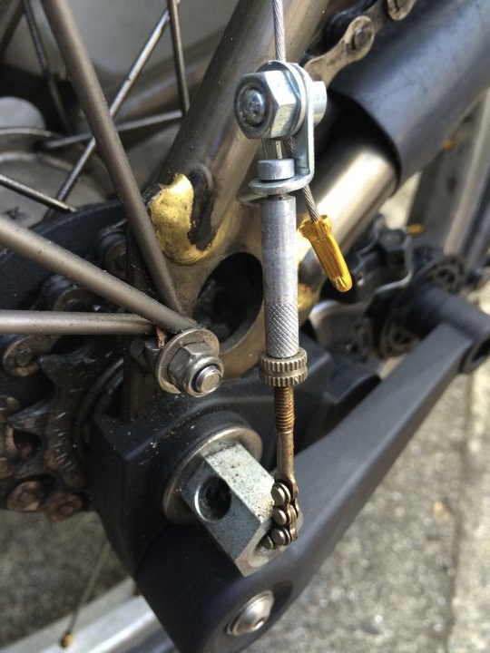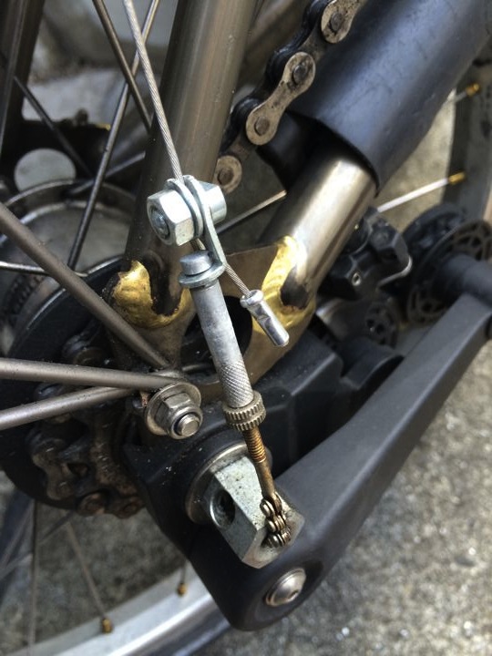 リアのブレーキワイヤーも、シルバーからゴールドへ!