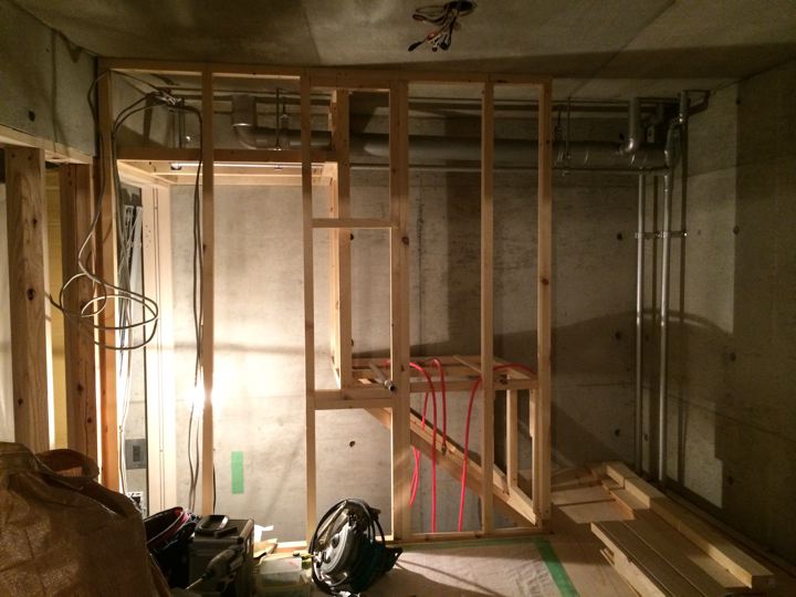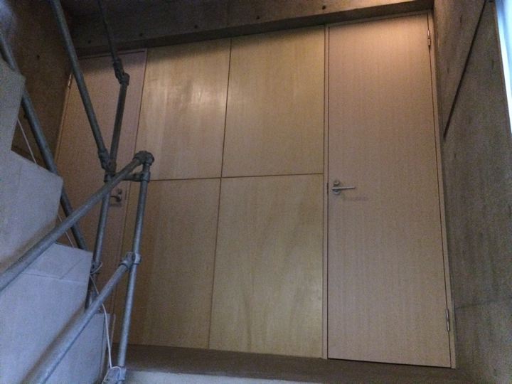 階段室との境はつ〜つ〜だったので間仕切りを付けてドアを付けます。