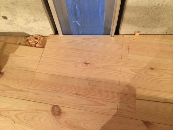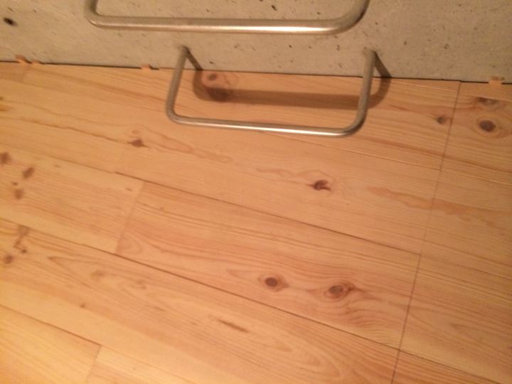 床はよくあるローコストな幅広パイン材の無垢板フローリングです。