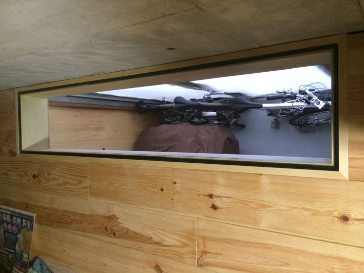 一部縦長窓が貫通します。一応開く様に床を取外し式に。