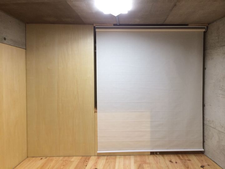 おか〜の収納その2。余ったロールカーテンをつけました。