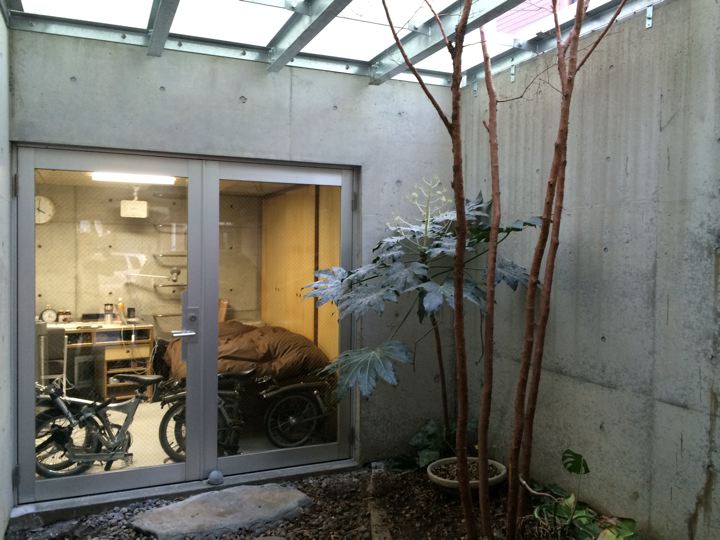 中庭に宙刷りにした床壁天井がガラス張りの部屋案は却下。