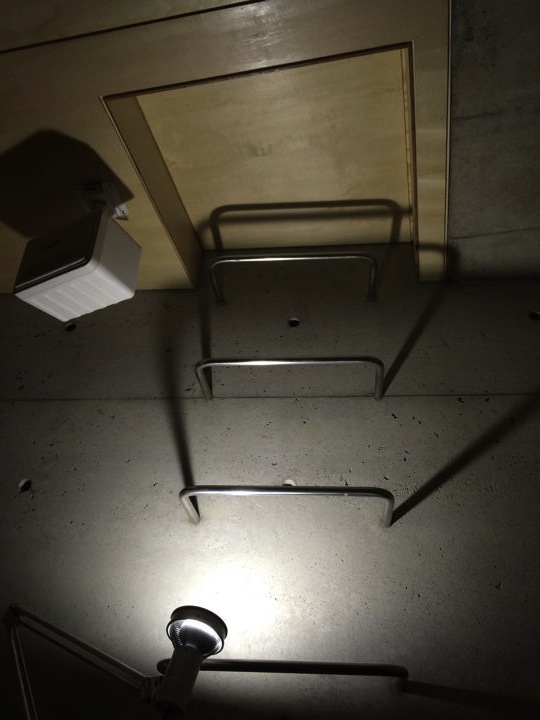 かつてのロフトへのタラップも残してハッチにします。