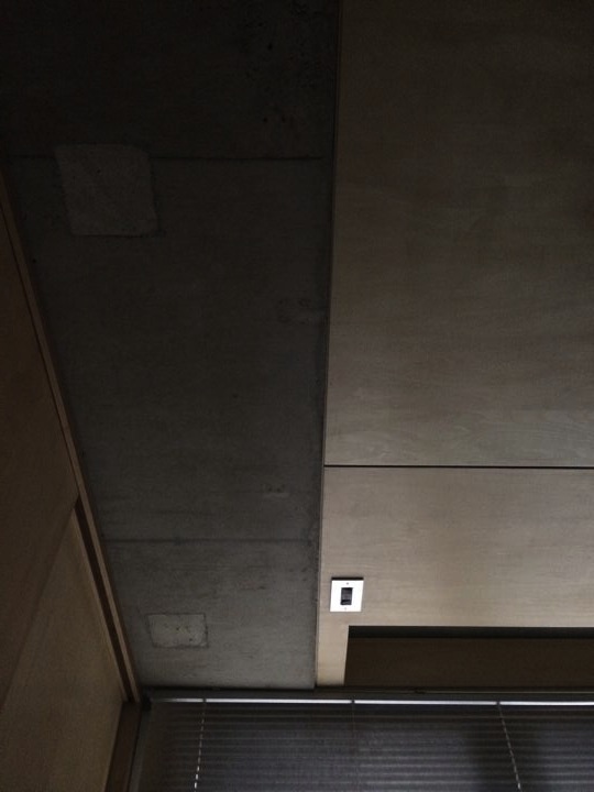 元々あったコンクリートのロフトと新設した天井の境界。
