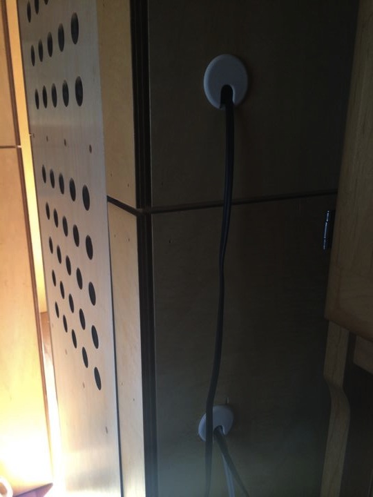 背面から既存間仕切りをも貫通させ電源配線!