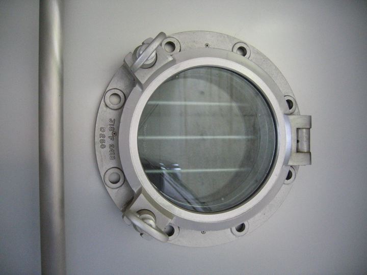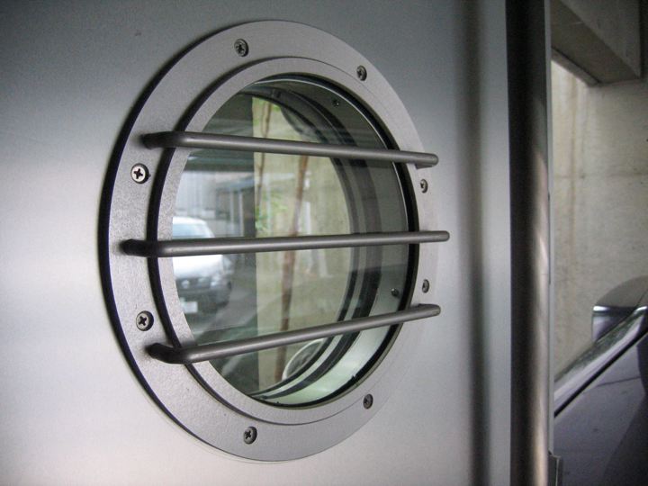 カッコいいアルミ無垢な船舶窓を内外につけましたが