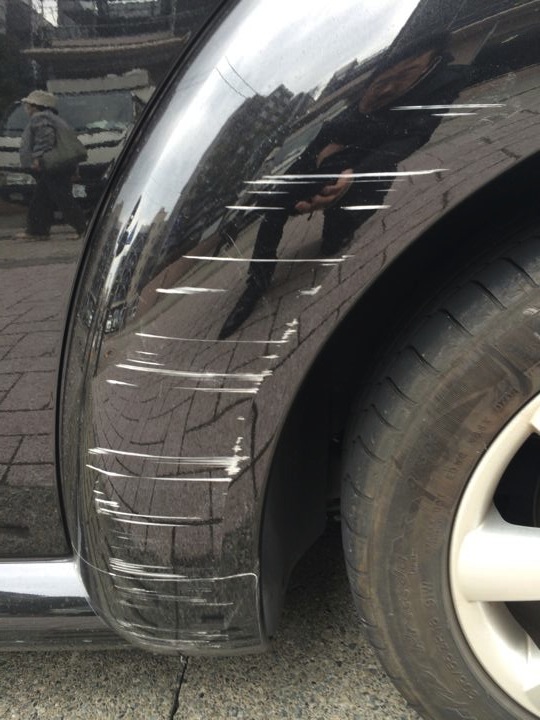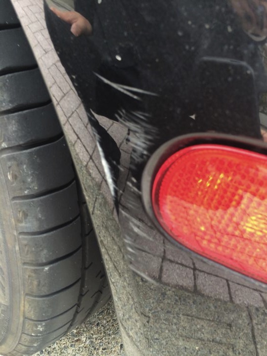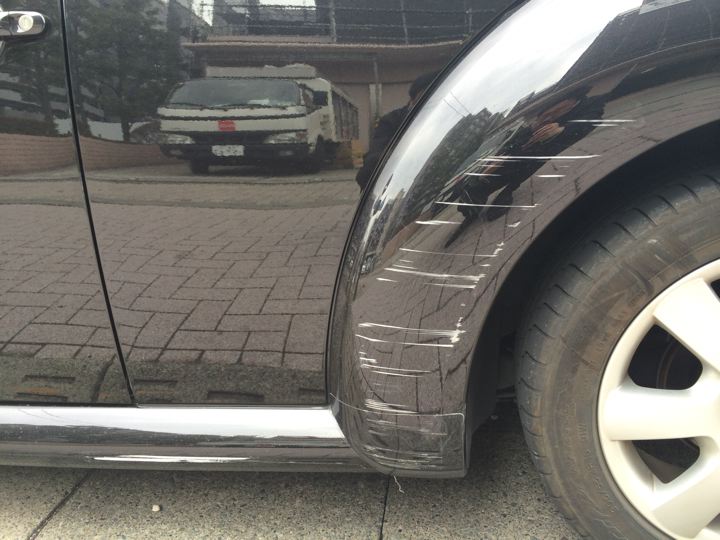 とかくやりがちな、でっぱったフェンダーの左後方手前側!