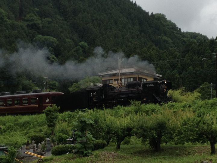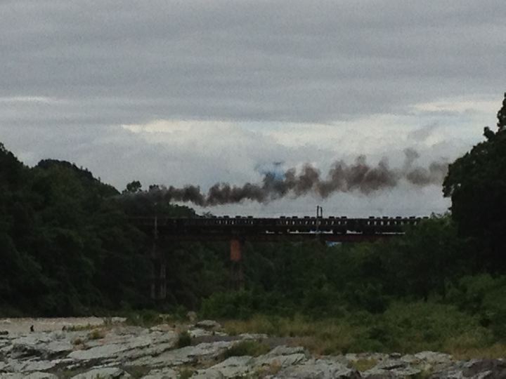 ミスターの最初の撮影地長瀬に到着。鉄橋を渡る煙もくもく!