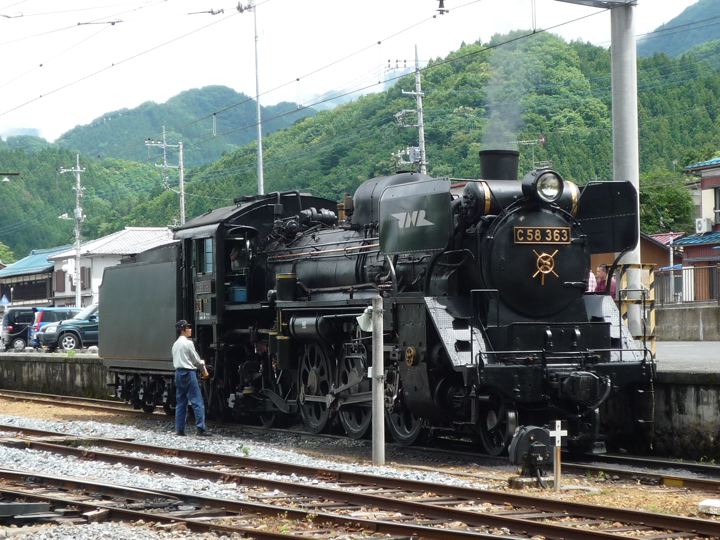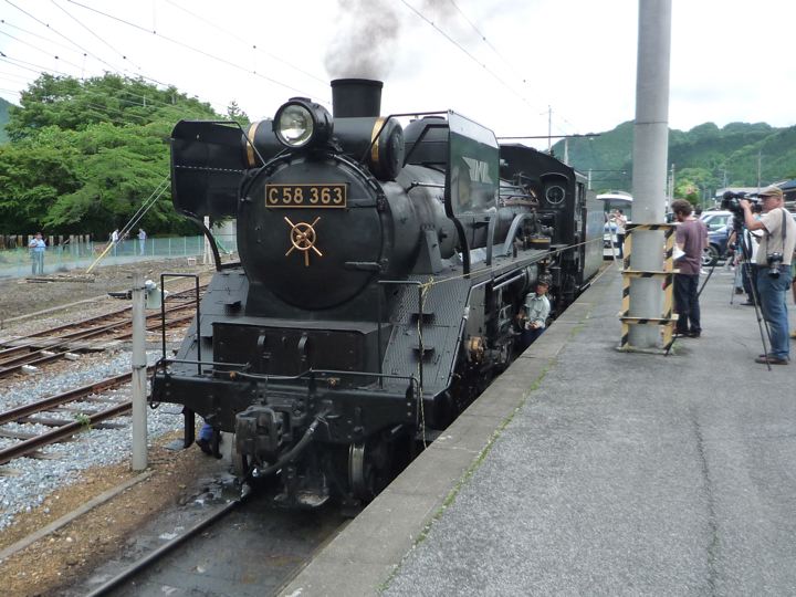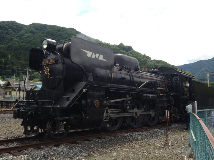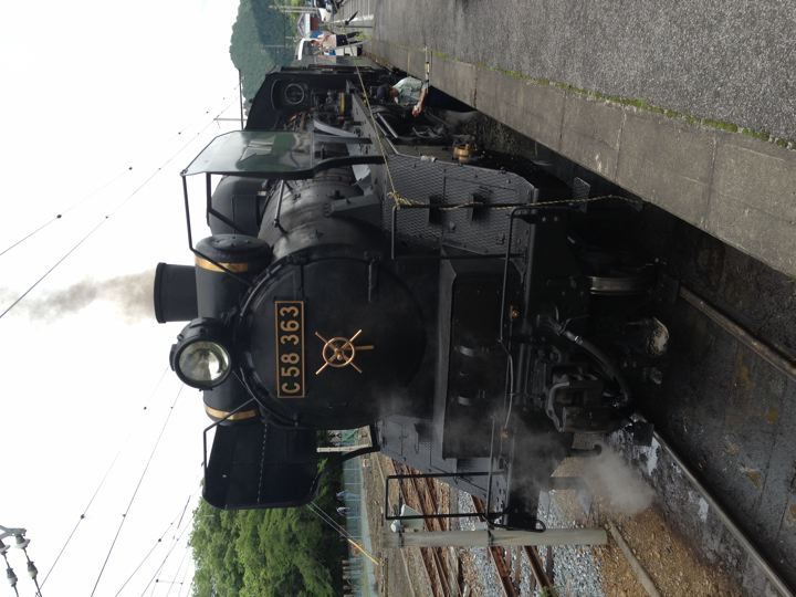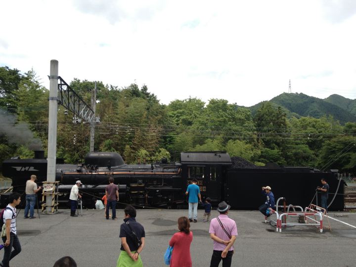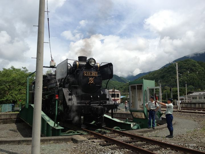 秩父鉄道三峰口の鉄道車両公園到着。先ほど遠景で撮影したC58が入ってきて転車台で回転したりしてます。他にもいろんな電車がありましたが、僕ちゃんにはよくわかりません!