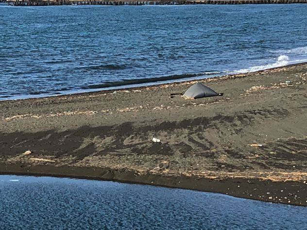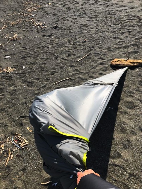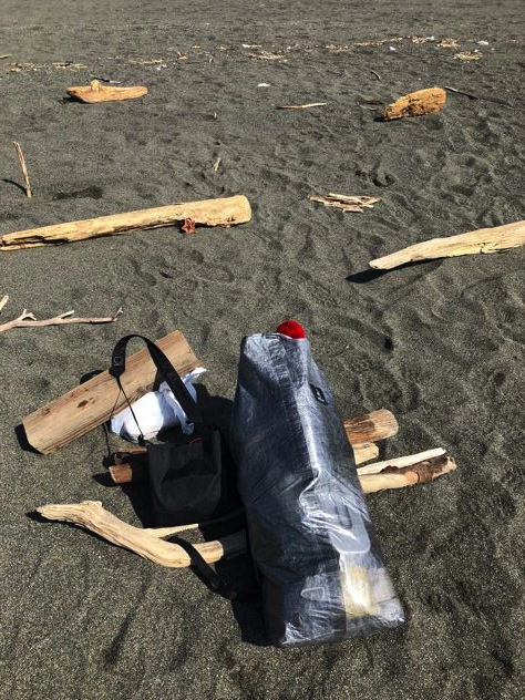 強風海岸中洲を、トレンクル担ぎながら脱出。