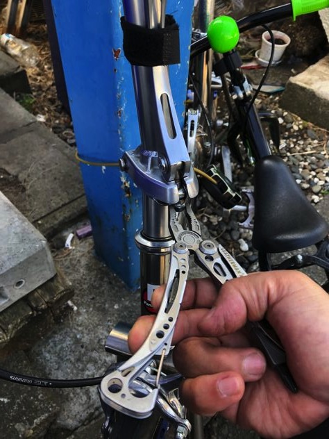らーめん食べてたらトレンクルのステムが折りたためなくなってレザインのプライヤーが役に立ちます。こ〜ゆ〜事って結構ありますね。プライヤーとかペンチとか大事〜。