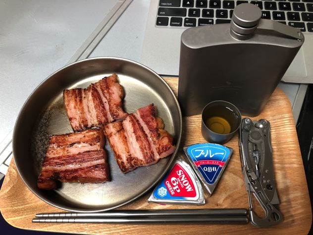 ちびちびとブルーチーズと厚切りベーコンで飲み直し。