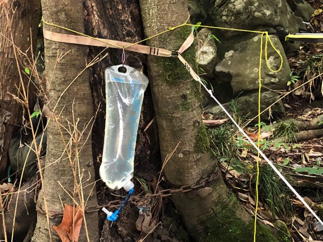 沢またぎならではの足元の天然冷蔵庫へ飲み物を冷やします。