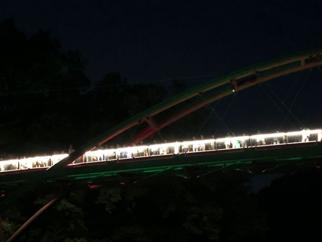 割岩橋のライトアップと下の河原にもプロジェクションマッピング。幻想的〜。ここでこんなものが見られるとは、しびれゔぁ!
