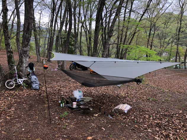 今回はスケスケのシートゥサミットULハンモックにニンジャタープの組合せにて。