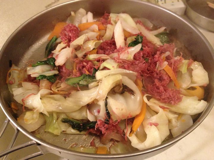 コンビーフと野菜炒めバウルー!うみゃ〜!