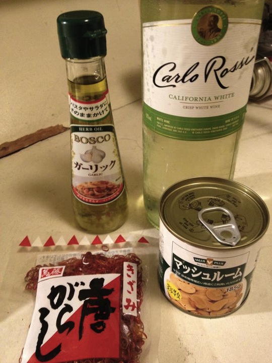 ペペロンチーノと鷹の爪のっけて・・・