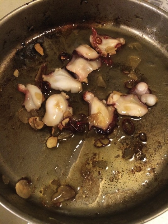 次はタコに挑戦!チタンのコッヘルフライパンでタコを焼く!