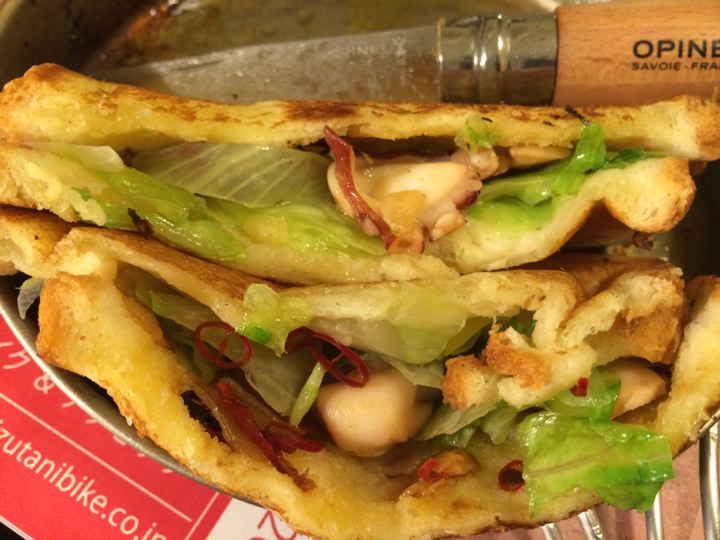 チタンのコッヘルフライパンでタコを焼く!