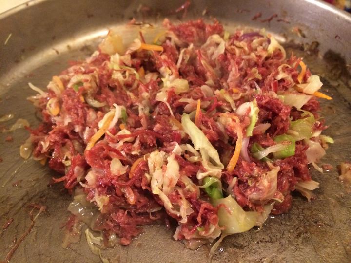 コンビーフと野菜炒め!