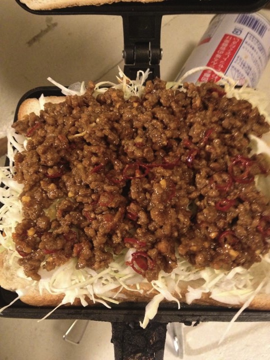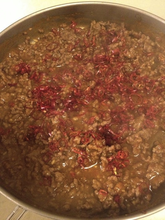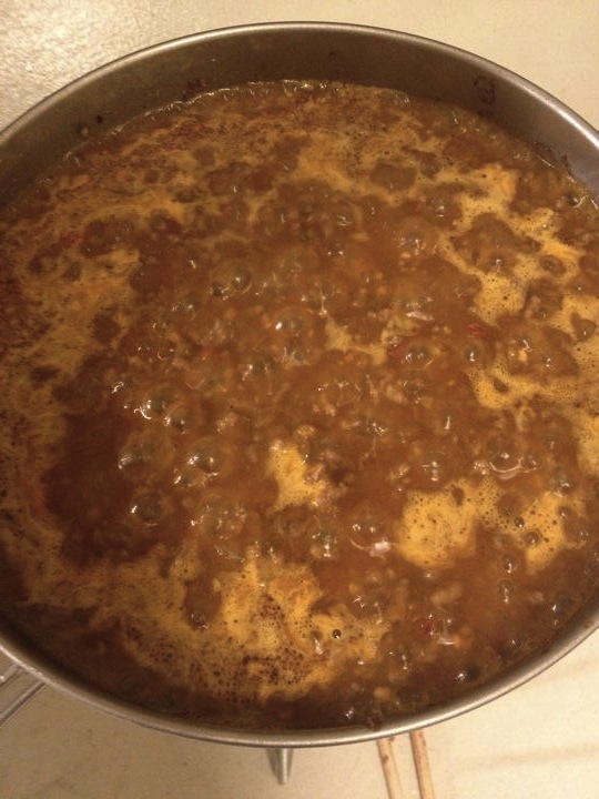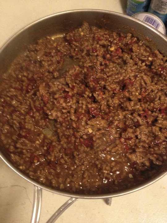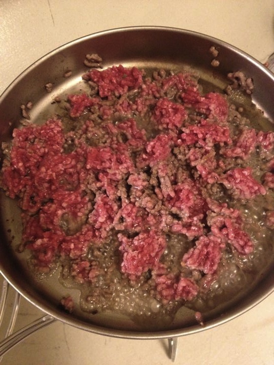 ゆったんの誘導により、Tacoを作る!ひき肉を炒めて・・・