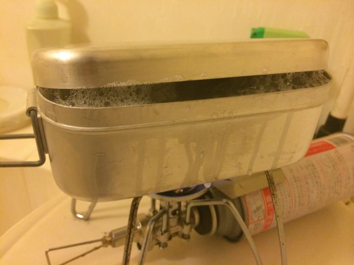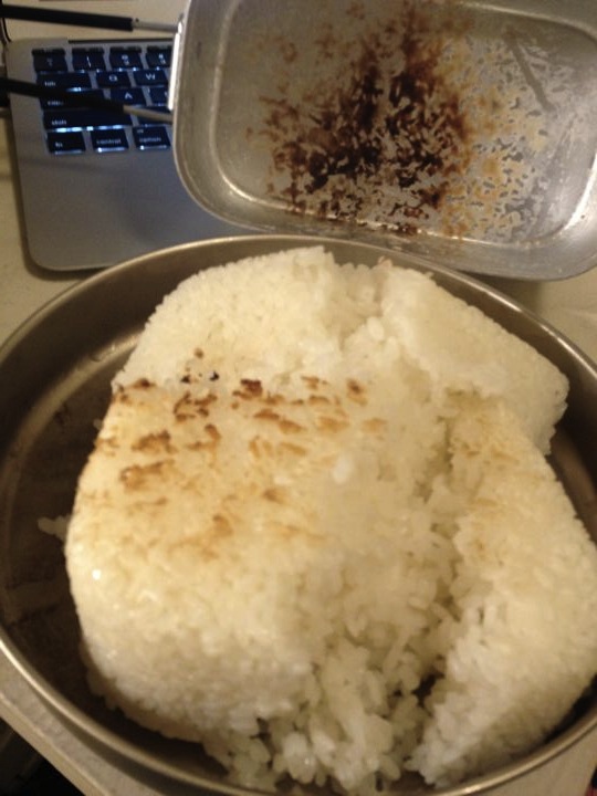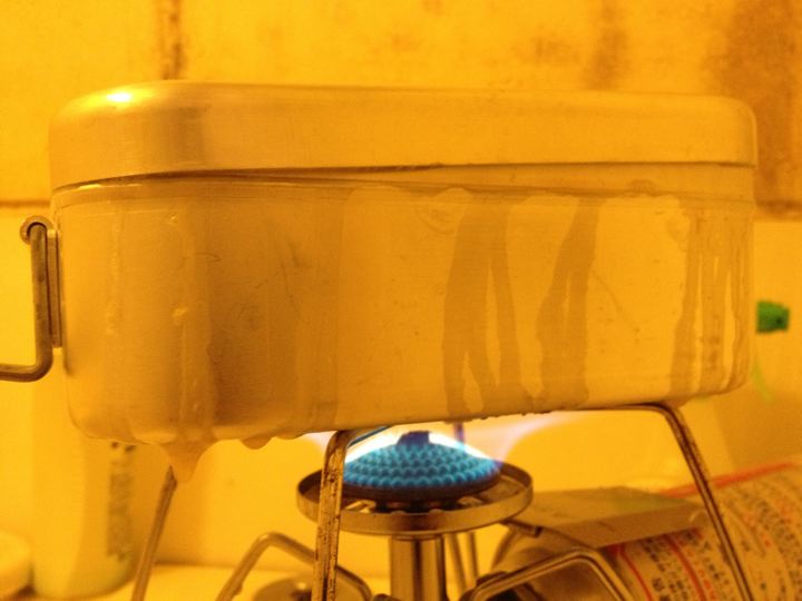 ryoさんに教えてもらったスウェーデン軍の飯ごうのメスティン。銀座カプセル生活5年目にしてようやくご飯が炊ける様になったのですが・・・。