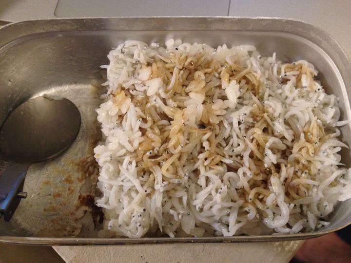 後は普通に炊くだけ。ごま油とショウガ醤油でタレを作ります。