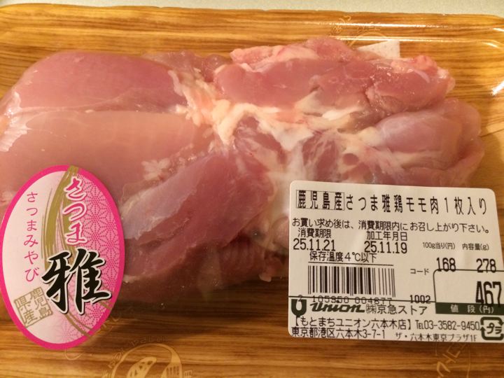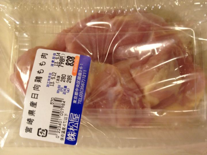 銀座で散々鶏もも肉を探しまわったあげく、ハナマサさんにはでっかいのしかなく、松屋さんのデパ地下で高級地鶏をGET!