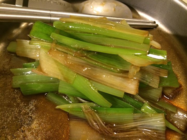 葱のおひたしを添えて、いい感じ!鶏肉をたれにつけながら、あるいはタレをかけちゃってもいいです。何度食べても、これは、ち、超うみゃ〜!