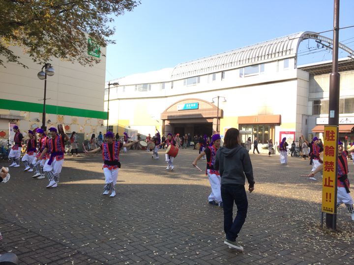 喜多見駅では何故か沖縄のお祭り。謎です。