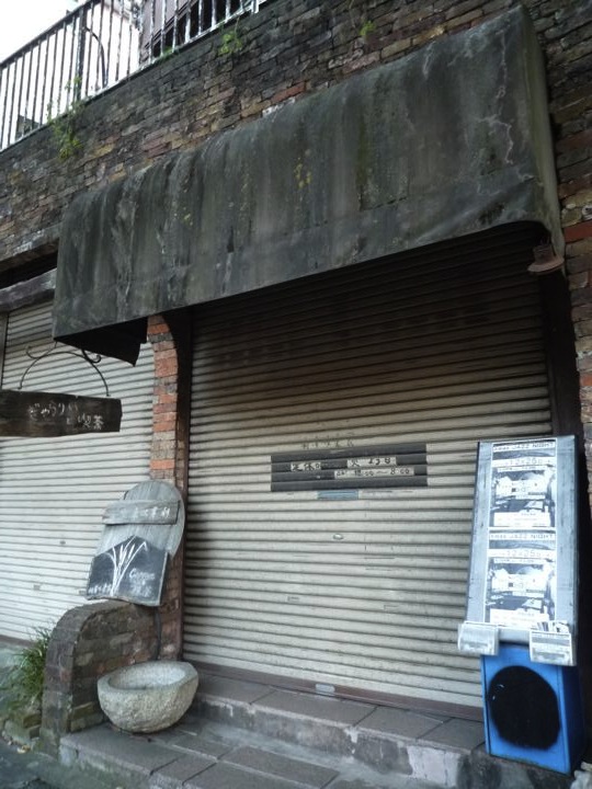 その崖の隣にあるお店。今日はお休みか。ぬ〜