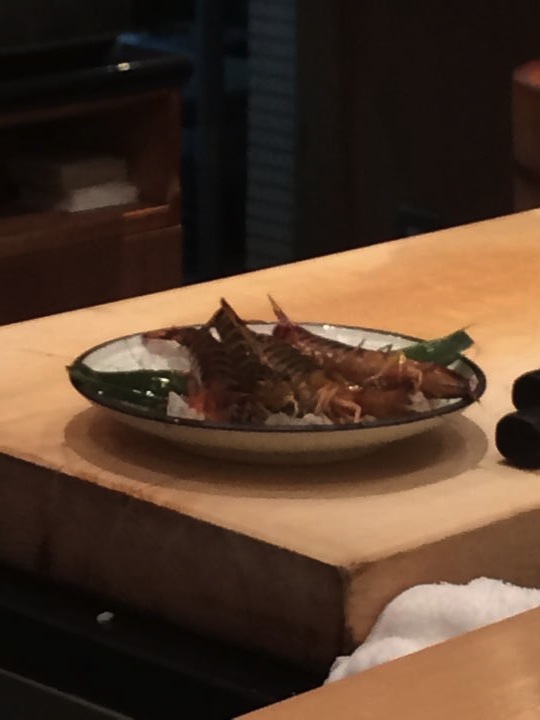 板前さんが生きた海老さんの皮を見事な包丁さばきで剝いたかと思うと・・・