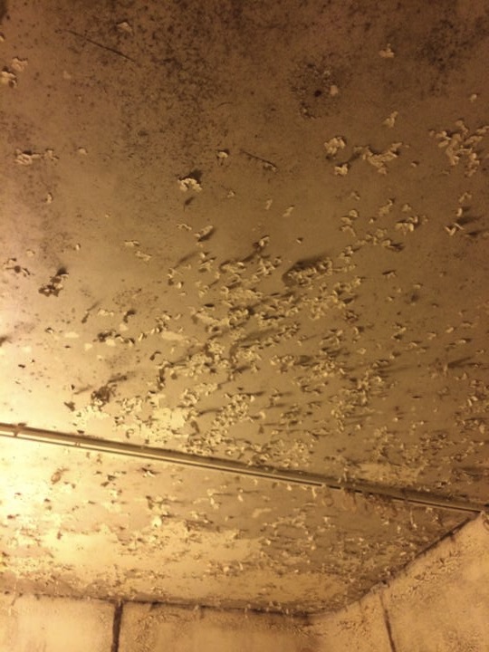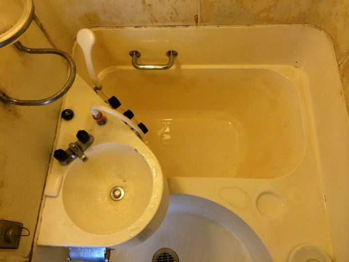 お風呂の中は、壁も天井もペリペリ。