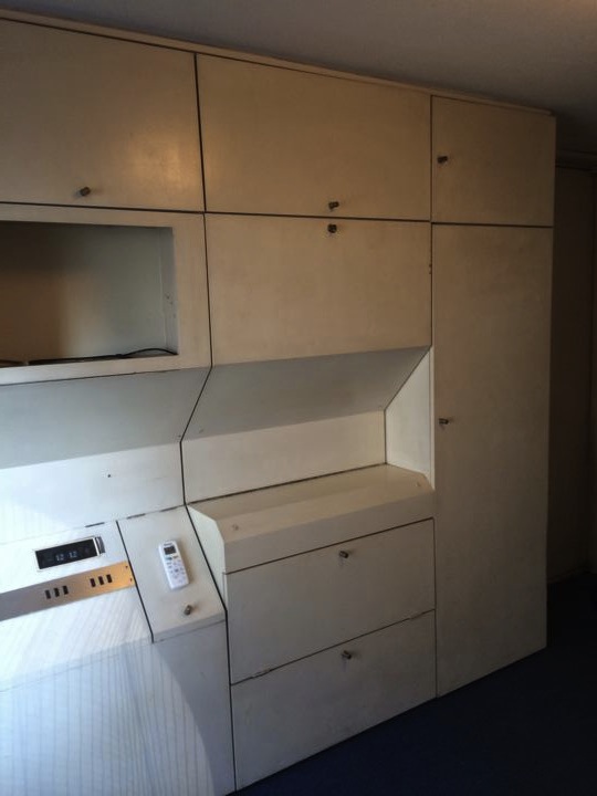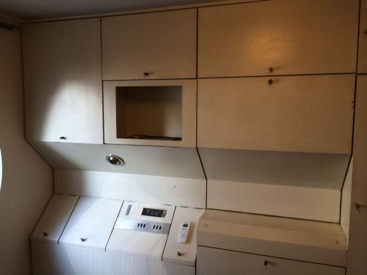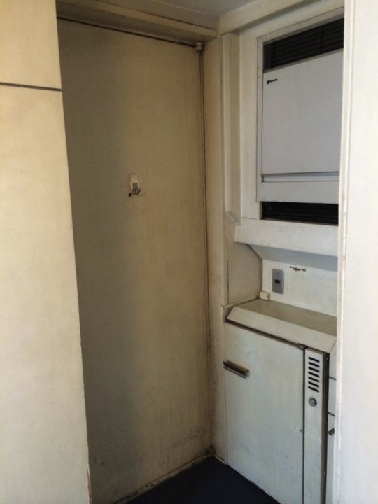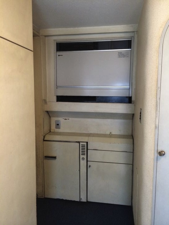 エアコンも冷蔵庫も壁面造作内にきっちり収まってました(全部壊れてますけど)