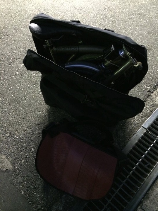 ブロちゃんはいつもの様にラディカルデザインの輪行バッグ。