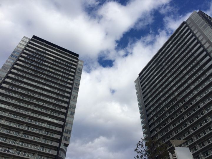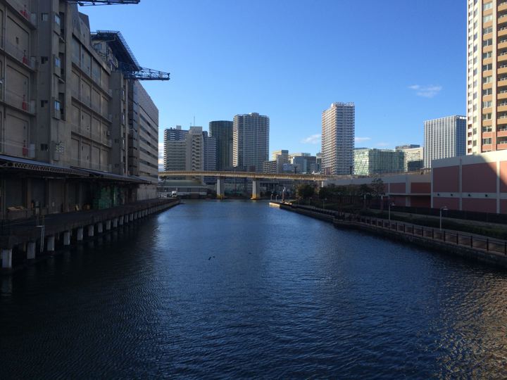 徒歩でお台場方面へ向かいながら、月島方向をのぞむ。