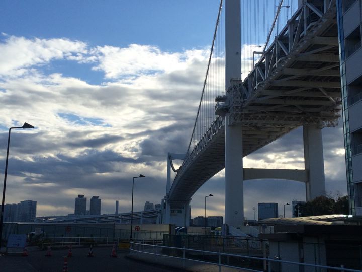 で、結局レインボーブリッジを歩いて渡りながら初日の出を拝む事に。
