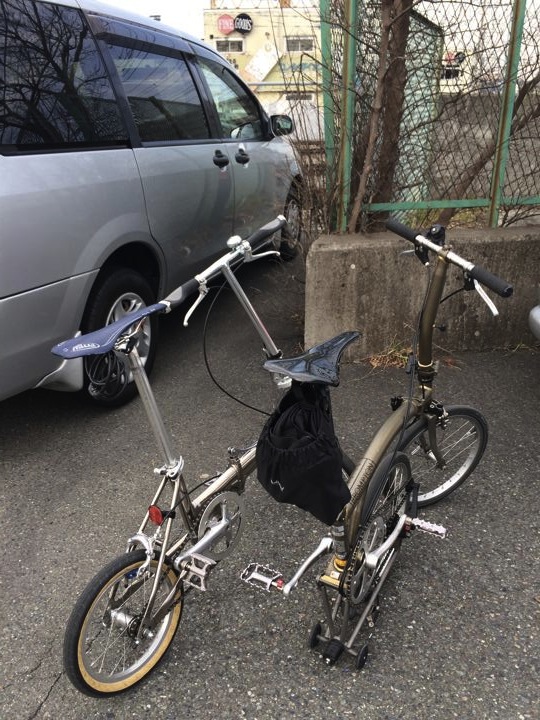 軽量化Brompton8.8kgならこんな事も出来ちゃいますぜ。イヒヒ。
