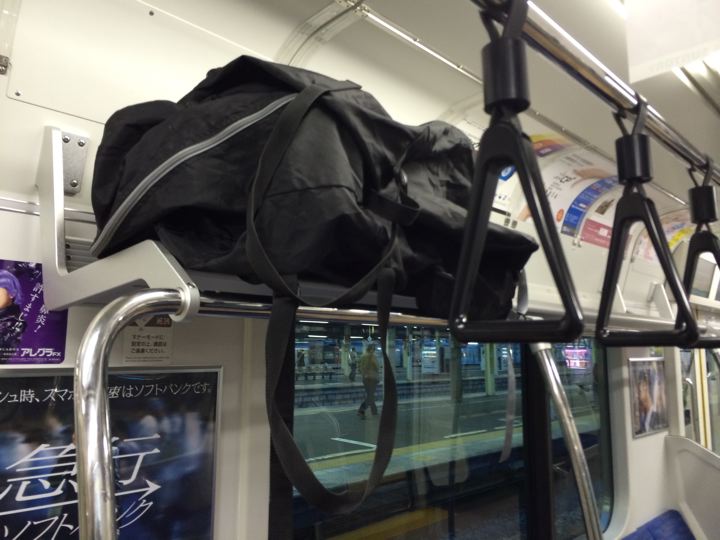 さすが6.5kgのトレンクル!網棚に楽々乗せられます!