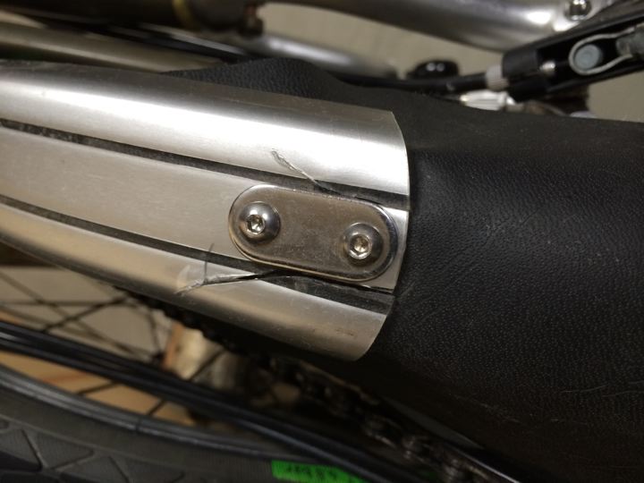 純正泥除けが割れとる!