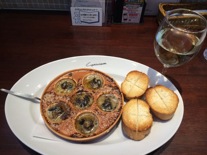 更にフランスパンを、残ったガーリックオイルにつけて食べると・・・