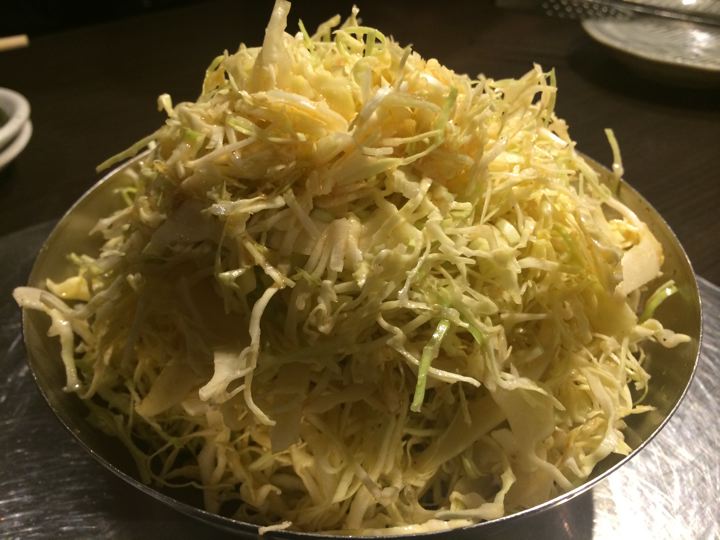 この千切りキャベツが、安くて量が多くてうみゃ〜!